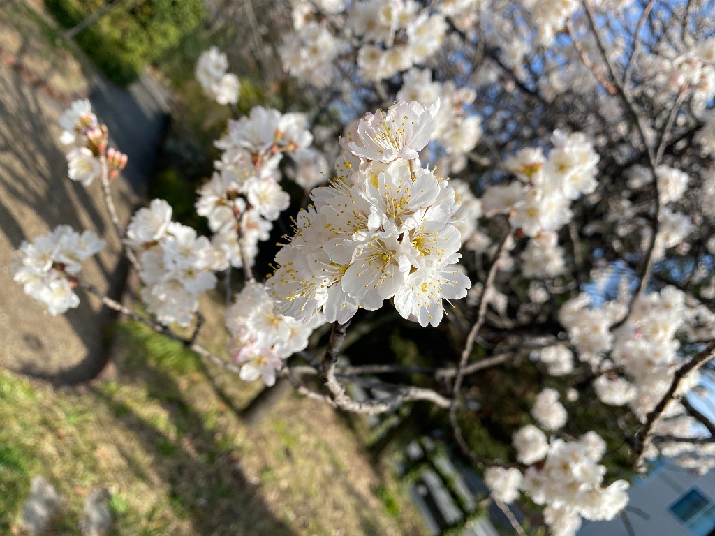 写真は駐車場から店舗入り口に入るまでの道と桜?🌸が咲いていたのでパシャリ📷